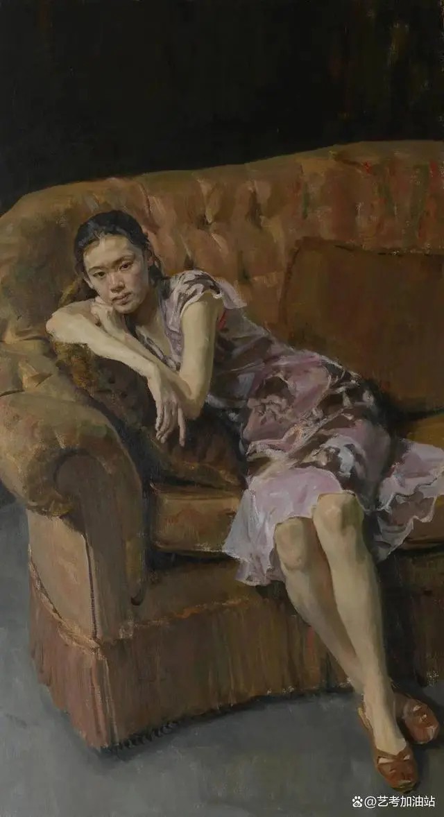 何红舟的东说念主物油画作品多以女性形象为主,他尝试通过颜色和线条的进展,营造出女性的柔好意思和精巧感。具体来说,何红舟东说念主物油画作品的特质包括: